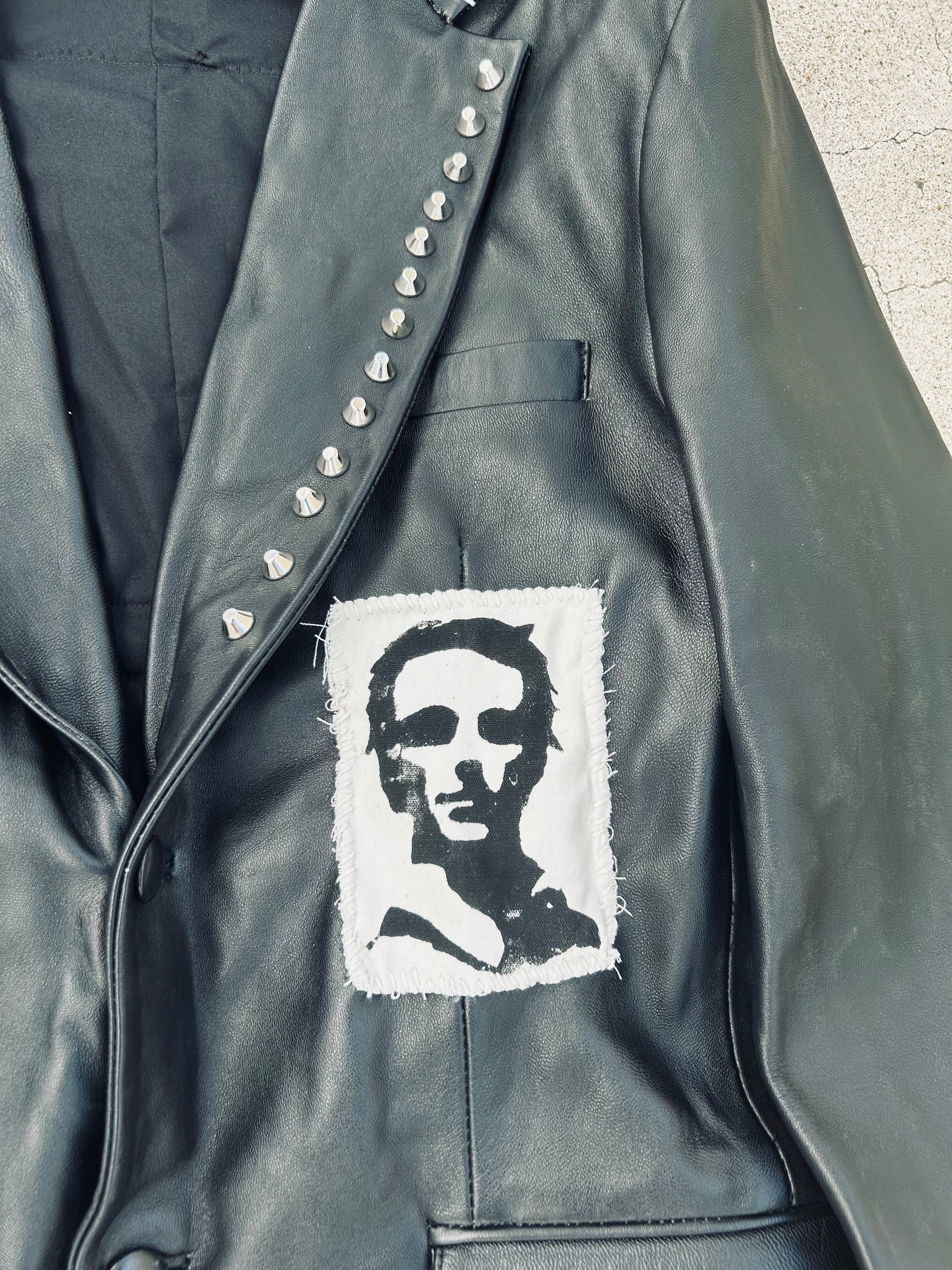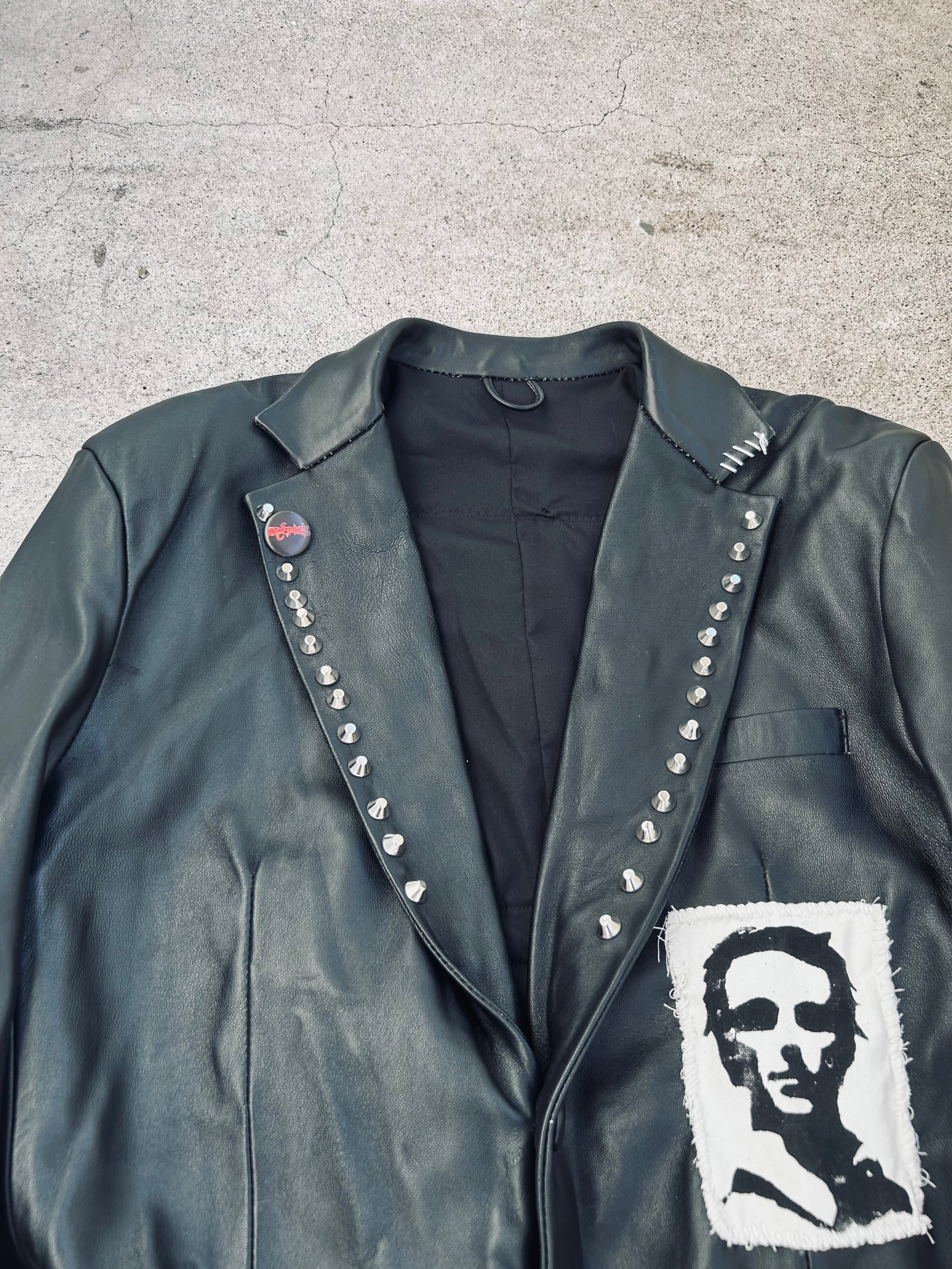 レザーのテーラード をパッチと鋲でカスタムしてます。