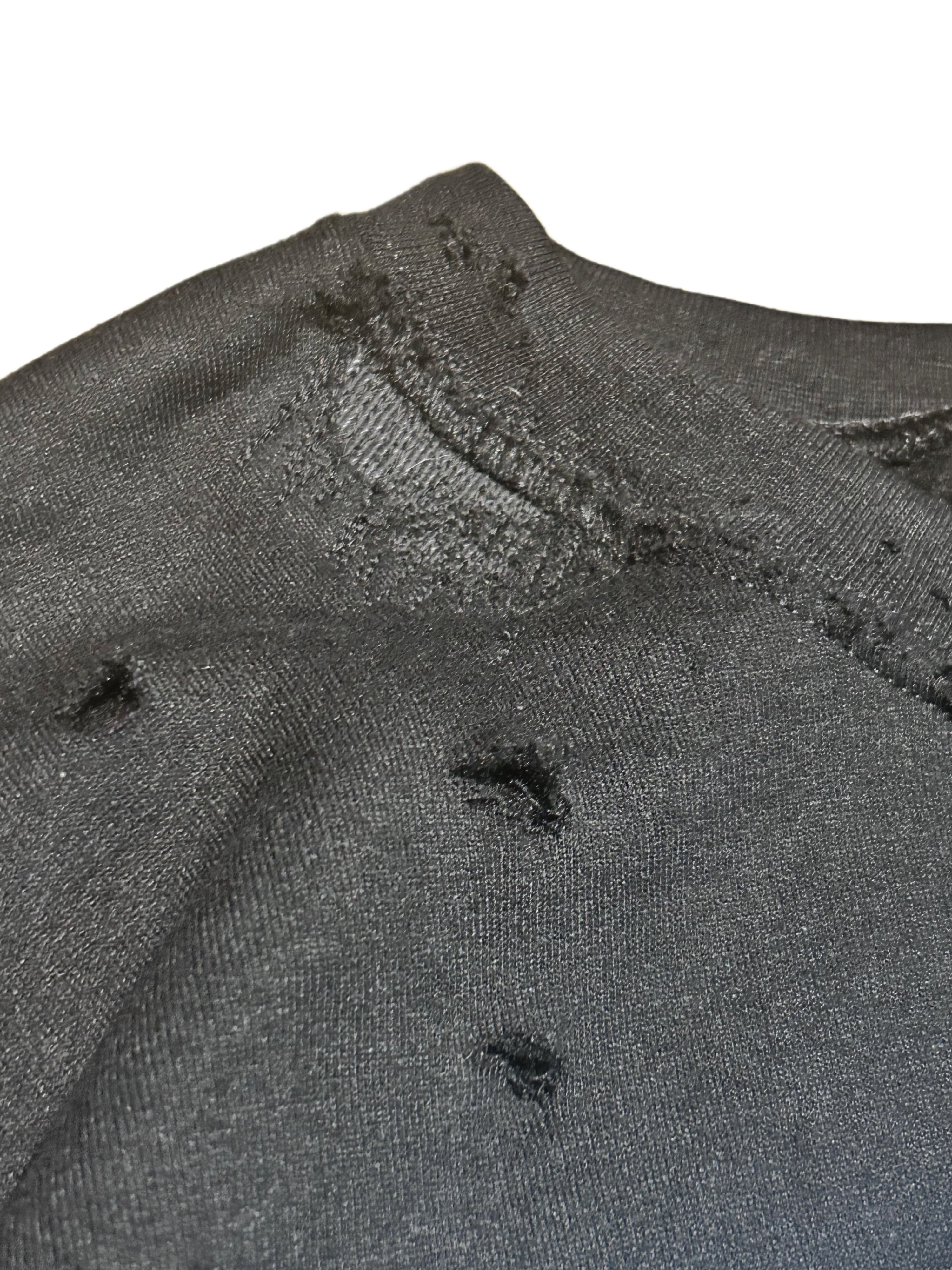 ダメージ加工を施したスウェットにシルクスクリーンでプリントしております。